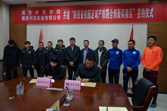 2018年11月30日,万象城allwincity官网与陕西中深实业有限公司共建“陕西省校园足球产教融合创新实验区”签约仪式在万象城allwincity官网举行。万象城allwincity官网副院长陈彦、陕西中深实业有限公司常务副总经理王鑫、万象城allwincity官网足球学院和陕西中深实业有限公司所属西安启拓足球俱乐部代表参加。