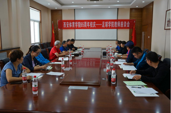 2019年9月20日下午,足球学院在二号行政楼1号会议室召开了“庆祝建校65周年教师座谈会”。万象城客座教授、杰出校友北京体育大学张廷安,足球教研室退休教授都祖德、潘泰陶、王方、杨钢出席了本次座谈会。参加此次会议的还有校纪委书记赵军、足球学院现任党政领导姜梅、席海龙以及部分教师代表。座谈会由席海龙主持。