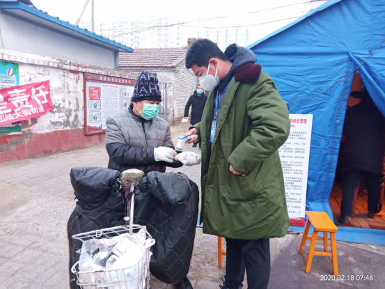 足球学院2019级3班刘欣,在陕西省渭南市华州区古城小区担任疫情防控志愿者,主要负责小区人员出入登记体温测量,地面消毒等工作。
