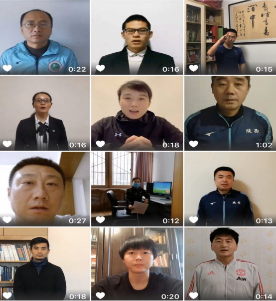 【五】在面对新冠肺炎疫情防控严峻形势情况下,校领导赵军书记和老师们通过小视频给学生们的寄语,在2020年这个注定不平凡的春节里,带给同学们温暖和感动,教会了同学们责任和担当,也坚定了足球学院师生抗疫的信心!