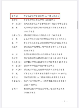 曾玉韬:男,汉族,1997年9月出生,甘肃白银人,共青团员,万象城allwincity官网足球学院2017级三班学生,现任万象城allwincity官网学生会副主席、大学生社团联合会主席,万象城allwincity官网习近平新时代中国特色社会主义思想学习实践社副社长;陕西省大学生骨干培养学校第十三期学员,参与陕西省第十三届人民代表大会常务委员会第11次、13次会议旁听。曾获校级“优秀共青团员”“优秀共青团干部”“校园文化先进工作者”“优秀学生干事”“优秀学生干部”“校庆工作优秀志愿者”,省级“2018世界篮球峰会优秀志愿者” “2019年‘三下乡’活动省级先进个人”等荣誉。