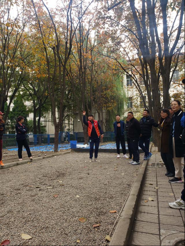 首先由地掷球教研室教师刘转为全体老师详细介绍了地掷球运动的发展历程、比赛规则和赛制并邀请地掷球专业学生进行了示范。随后老师们分队进行了地掷球友谊赛,各位老师参与热情高涨,比赛精彩纷呈。