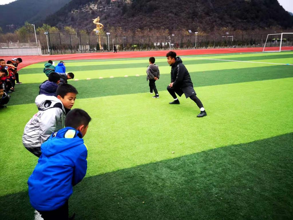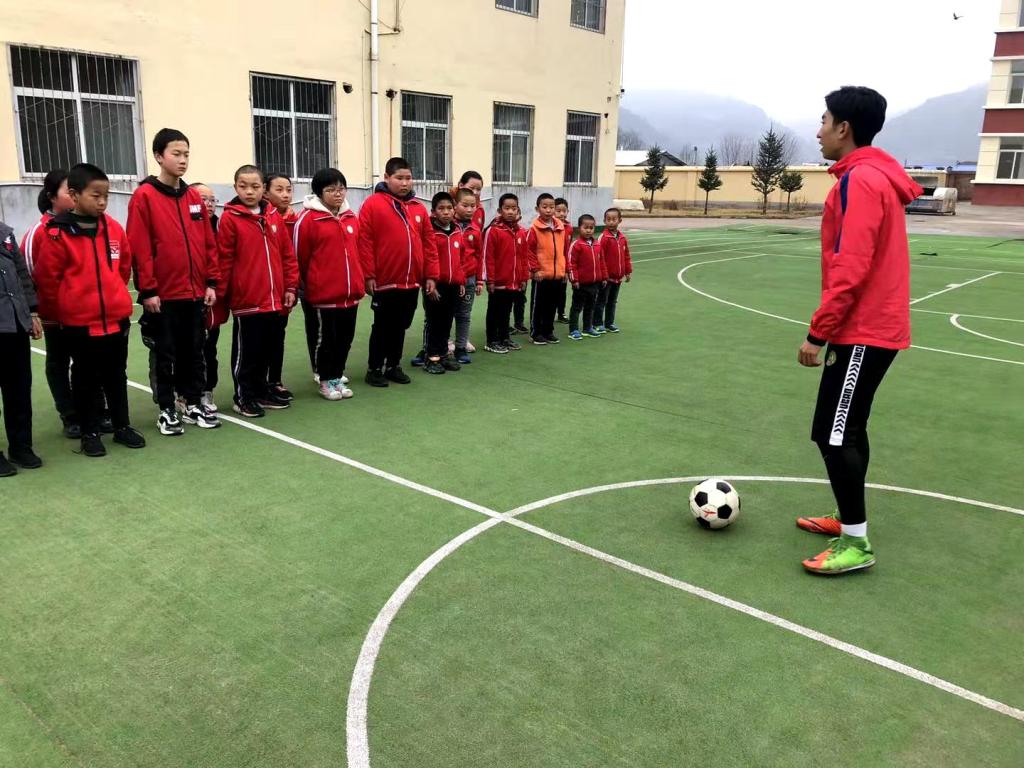 (图为足院19级冯阳在黄龙县中心小学指导)
