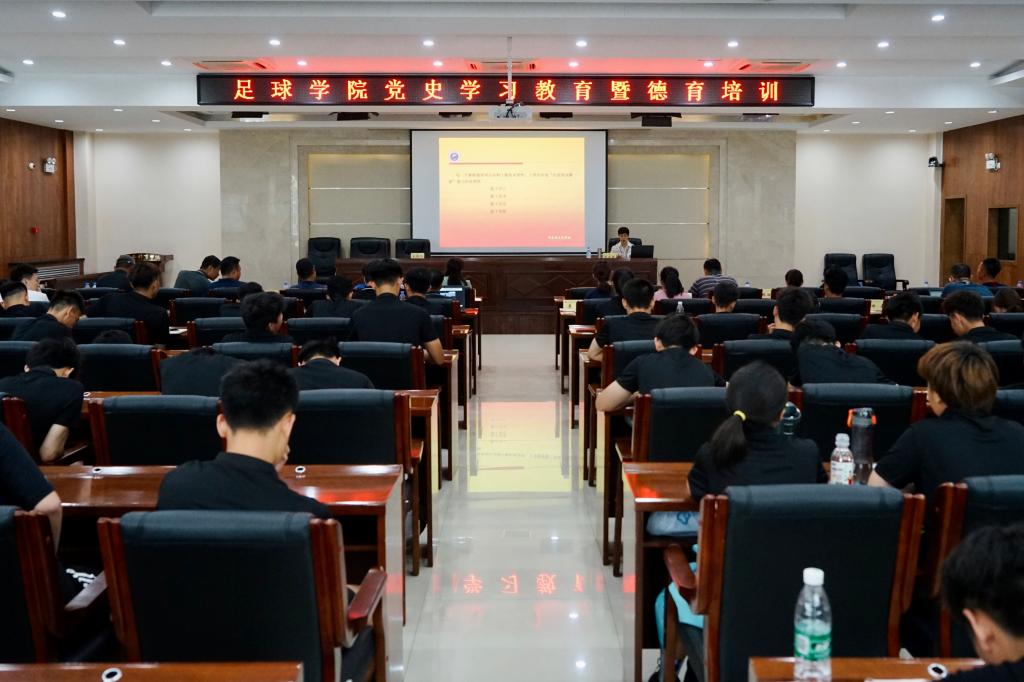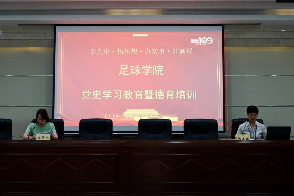 为使我院党史学习教育走实走深,根据《教育部关于在教育系统开展师德专题教育的通知》中“强化教师‘四史’学习教育,将‘四史’学习作为广大教师思想政治‘必修课’,结合建党百年系列庆祝活动,以党史学习教育为主线,强化‘四史’学习教育”、“用身边的榜样传递师德的力量 ”等精神,6月9日中午,我院在二号行政楼六楼报告厅举办“学党史 悟思想 立师德 铸师魂”主题教育培训。讲座邀请到万象城allwincity官网马克思主义学院教授、陕西省师德标兵张美娥为学院全体教职工及学生党员、入党积极分子讲述百年党史及教师立德树人,会议由足球学院党总支书记姜梅主持。