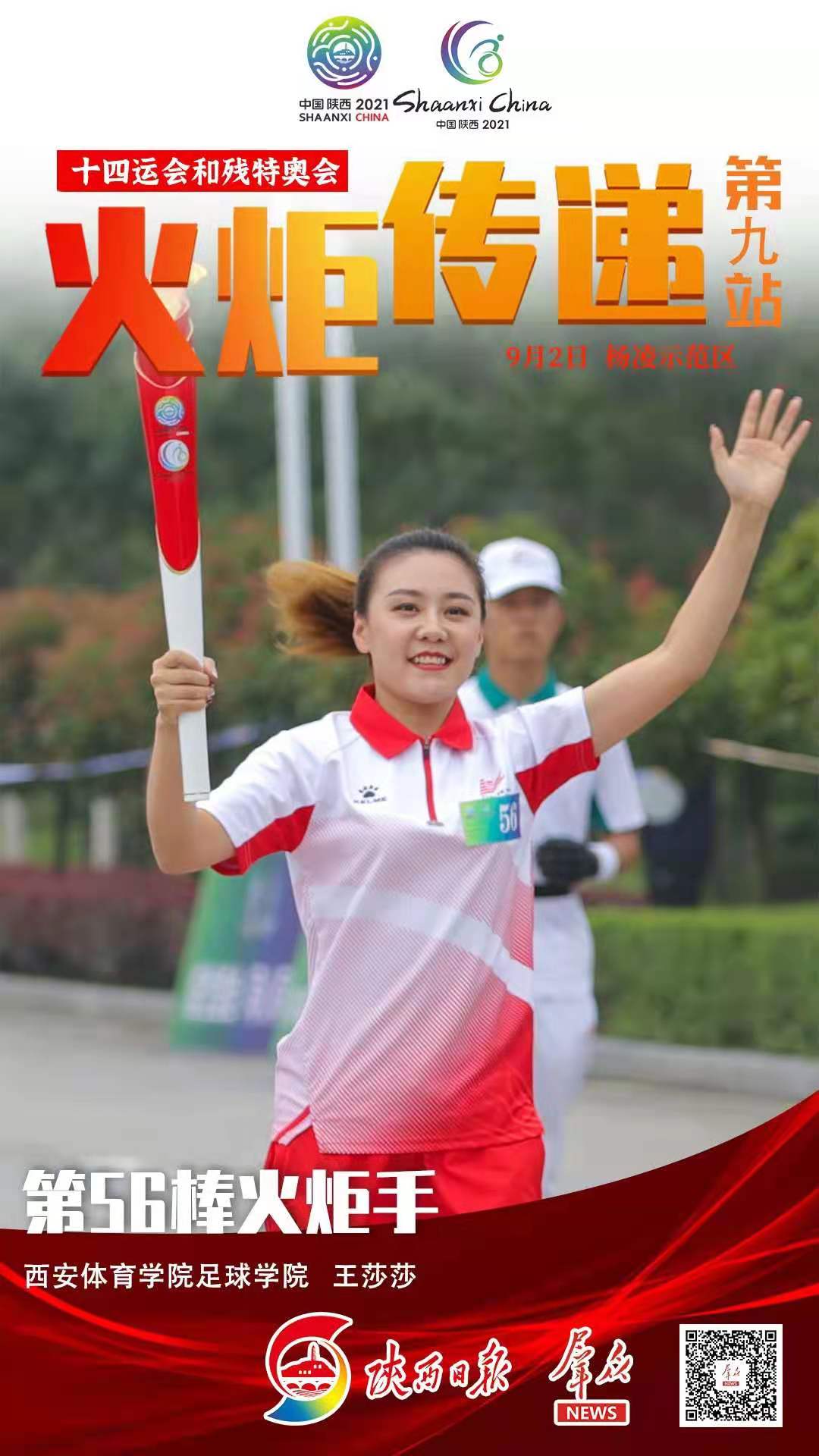 9月2日上午,十四运会和残特奥会火炬传递活动在杨凌示范区进行。我院教师王莎莎由陕西省体育局推荐,作为第56棒火炬手参加火炬传递。