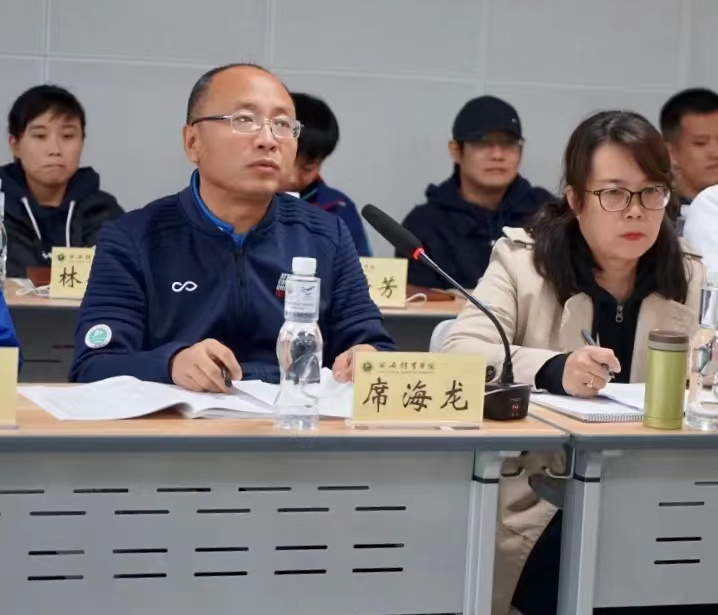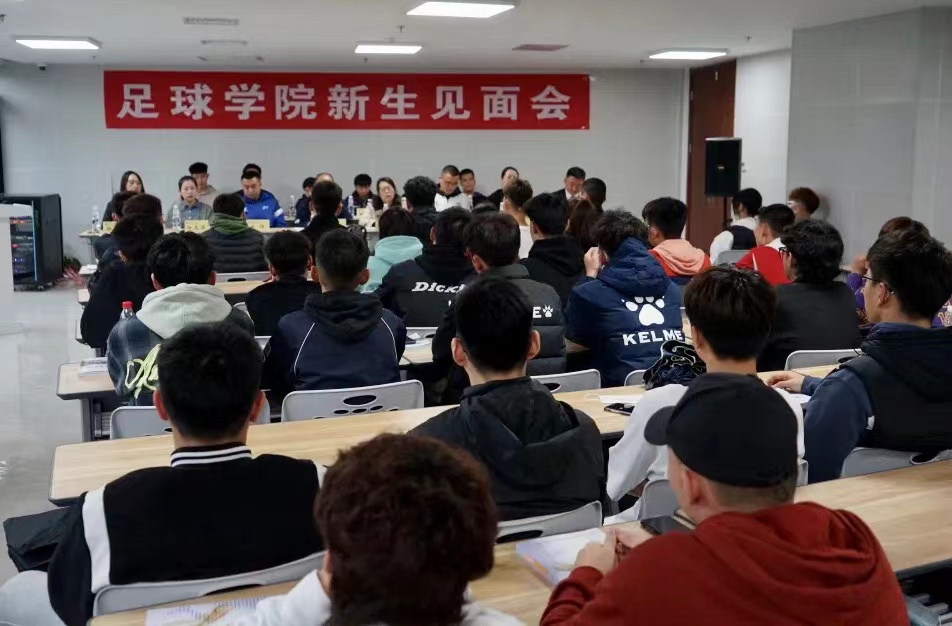 席海龙首先对各位新同学的到来表示祝贺和欢迎,并从足球学院的成立、师资队伍、取得成绩、社会实践、课程设置、教学科研六个方面做了详细介绍,接着对学生的培养要求与目标等方面进行了系统的解读。最后,席海龙对同学们的学习、训练提出了要求,希望同学们认真上好每一节课,成长为有担当、有想法,具有较强专项技能和理论的专门人才。