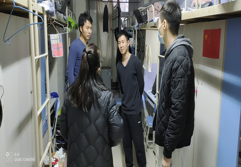 12月28日,为进一步落实学校疫情防控工作要求,保障疫情期间学生生活学习平稳有序开展,了解掌握存在问题,姜梅、席海龙带领辅导员及专项课教师走访学生宿舍,对学生进行慰问。学院党政班子详细了解同学们的生活、学习情况,仔细询问他们目前身心状态,介绍了当前疫情防控形势,强调学校疫情防控工作措施和要求,叮嘱并要求同学们不得离开宿舍、不得随意串门,注意宿舍内用电、用水安全,保持宿舍整洁和卫生,多开窗通风。希望同学们增强疫情防控意识,做好个人防护,加强自我调适,保持乐观向上的心态,积极参与学院举办的线上活动,支持配合学校、学院做好疫情防控工作,身体力行维护校园安全稳定。