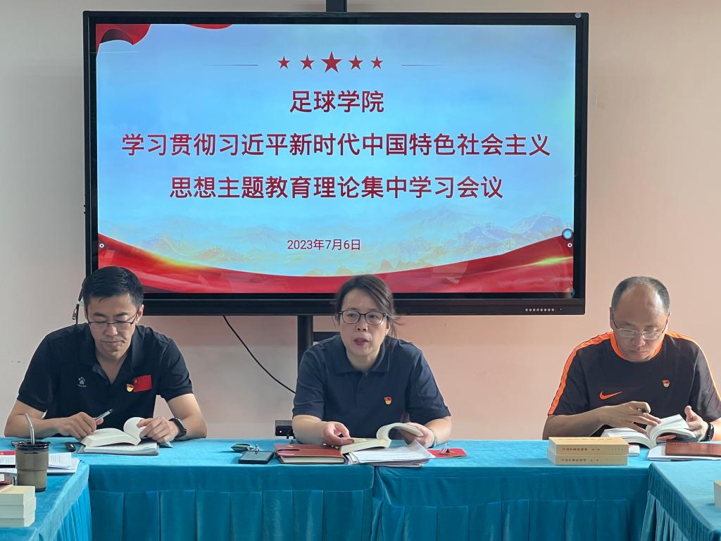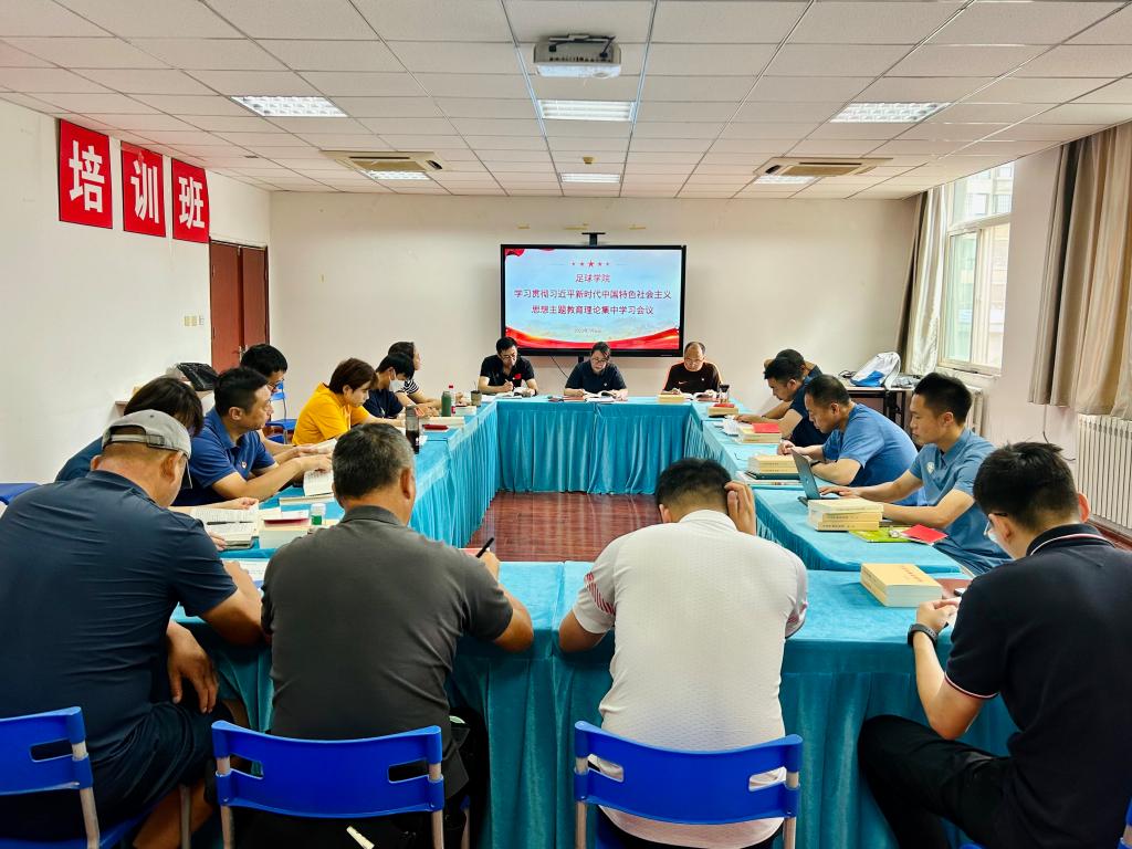 近日,足球学院在二号行政楼406会议室召开主题教育理论集中学习会议。足球学院全体教职工参会,会议由党总支书记姜梅主持。