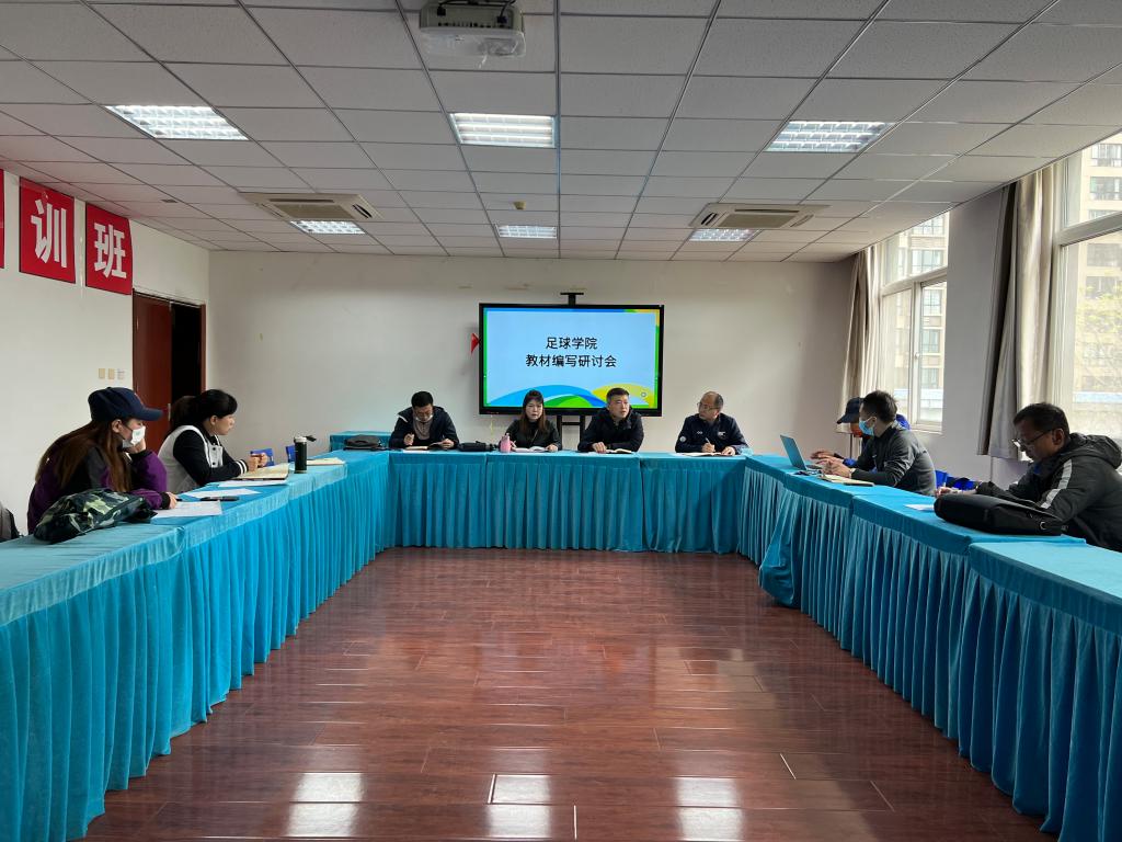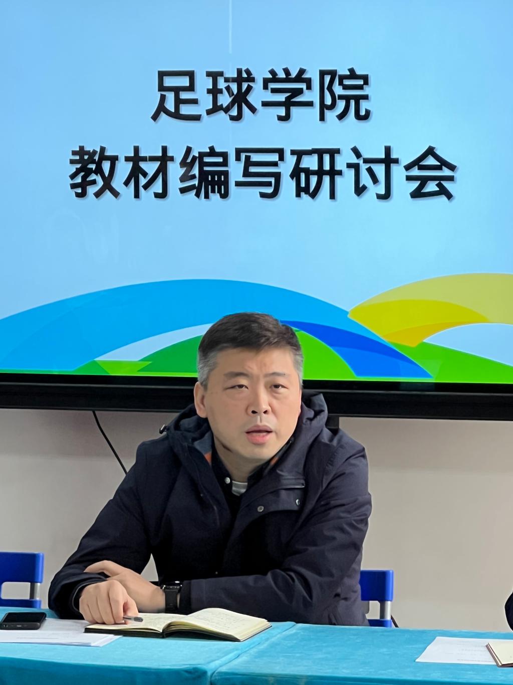 席海龙首先介绍了足球学院教材建设工作的总体规划和思路,今年是学校落实“十四五”规划的关键之年,也是学校全面加快高质量发展、实现赶超突破的关键之年,学校各项事业呈现出良好的发展势头,足球学院更要乘势而上,抓住机遇,通过规划教材建设带动学院师资队伍建设和教学团队建设,全面提升教师教学水平。同时注意营造有利于青年教师成长的学术环境和良好氛围,多次组织青年教师参与课程教学大纲论证和教材编写专题研讨,为青年教师提供学习、观摩的机会和条件。在教学研究和科研项目的申报方面积极引导青年教师参加,鼓励他们争取和承担教材编写、一流课程建设和教学研究项目任务,逐渐形成有专业影响力的教学梯队。
