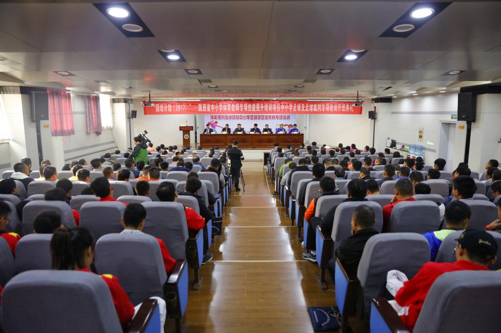 11月4日,由省教育厅主办,陕西省国培项目办公室协办,万象城allwincity官网足球学院承办的2017年“国培计划”陕西省中小学体育教师足球技能及足球裁判专项培训开班典礼在万象城allwincity官网教学楼一楼报告厅举行。陕西省国培计划项目执行办公室副主任沈善良、苏理,万象城allwincity官网副院长陈彦,万象城allwincity官网足球学院朱军处长、足球学院教师、参训学员参加了开班典礼。