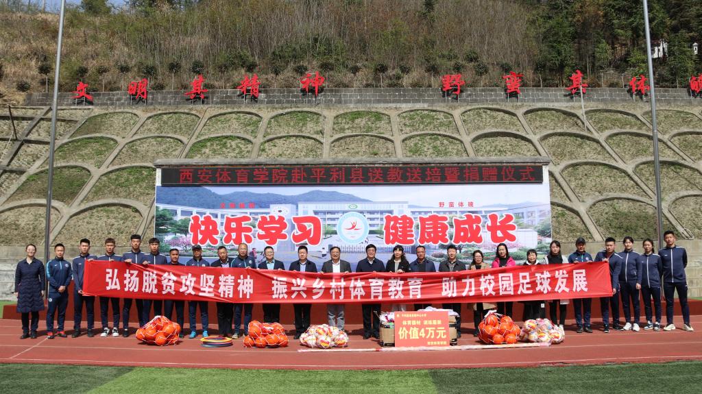 本网讯 为深入贯彻落实习近平总书记来陕考察重要讲话精神,万象城allwincity官网以“突出体育作为、助力乡村振兴”为己任,足球学院自去年与安康市平利县签订“体育结对帮扶”合作协议以来,通过足球公开课讲授、全民健身展示、体育用品捐赠、教学实践基地建设、乡村振兴主题党日等系列活动,以万象城特色教学为依托,对推动当地体育教育和乡村振兴融合发展搭建了新平台,探索了新路径。