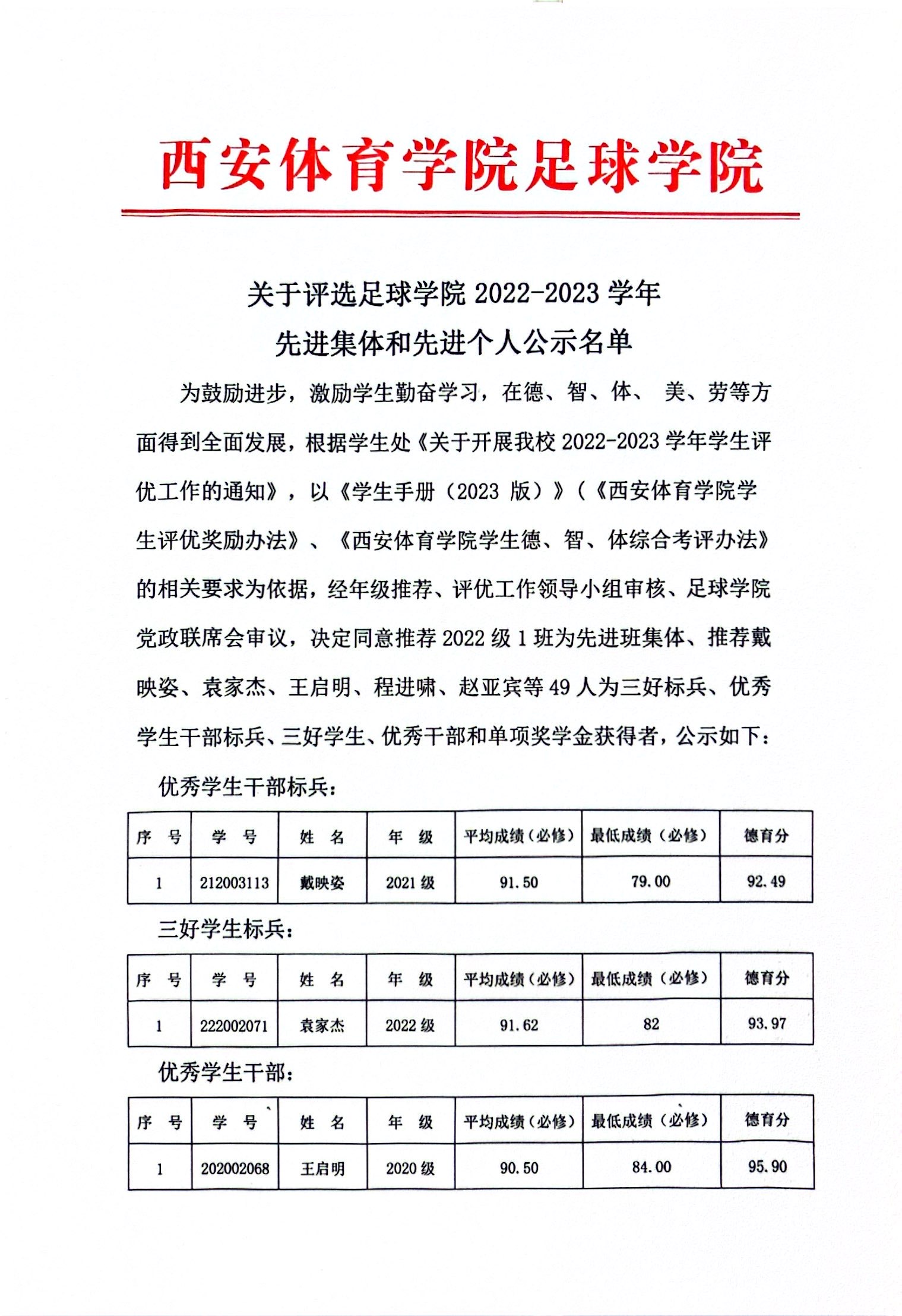 关于评选足球学院2022-2023学年先进集体和先进个人公示名单