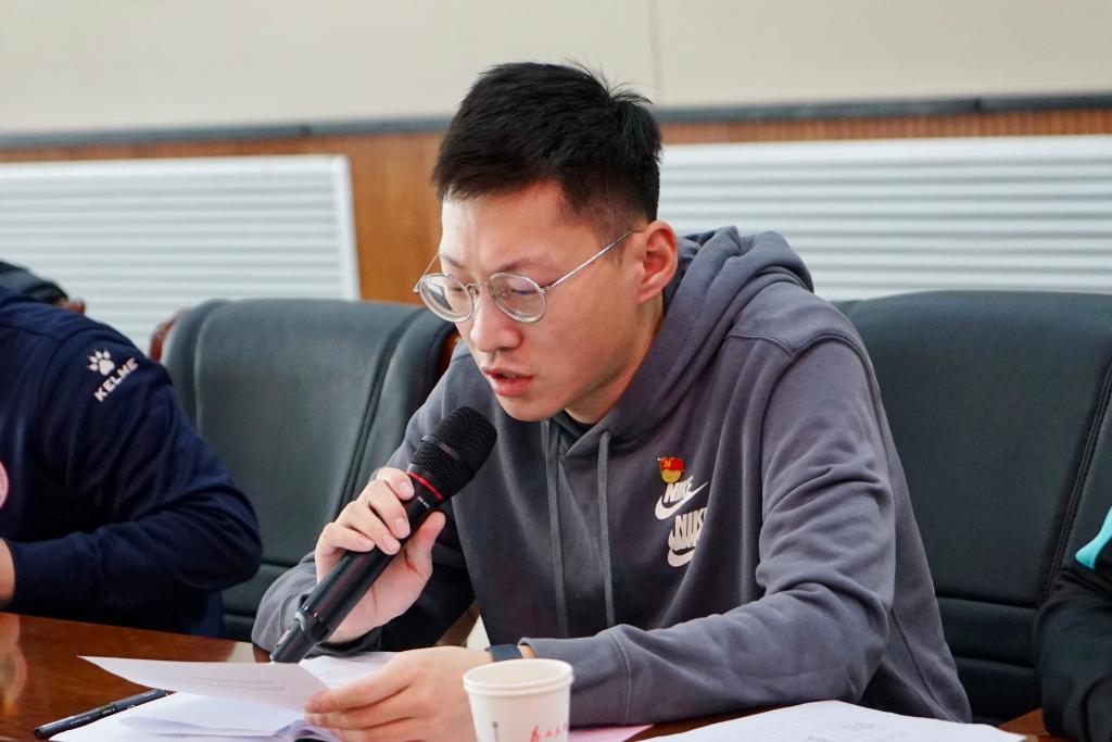 足球学院教师党支部组织委员胡鑫围绕“爱是教育的灵魂”分享了自己的体会。他表示将继续做好对前辈意志的传承,对优良传统的发扬,弘扬高尚师德、言传身教、淡泊名利,牢记习近平总书记的嘱托,落实立德树人根本任务,做有理想信念、有道德情操、有扎实学识、有仁爱之心的“四有”好老师,以优异的成绩向足球教研室老前辈致敬。