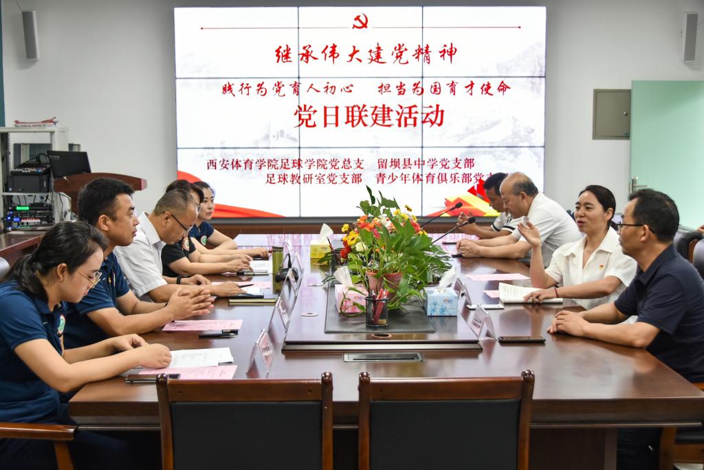 自“万象城allwincity官网——留坝中学足球专家工作站”成立以来,在校领导的关心与支持下,足球学院党政班子高度重视,长期选派专家利用寒暑假时间开展校园足球训练指导工作。在足球学院全体党员认真学习贯彻习近平总书记“七一”重要讲话精神之际,为把重要讲话精神贯彻落实到学院各项事业高质量发展的各方面,把“为群众办实事”贯穿党史学习教育全过程,7月中旬,学院选派四名教师党员驻地开展训练指导工作,解决留坝县校园足球发展过程中遇到的实际问题。在此期间,为充分发挥党建引领作用,强化党支部战斗堡垒,7月22日,足球学院党总支与汉中市留坝县中学党支部开展联学联建主题党日活动。足球学院党总支书记姜梅、足球学院院长席海龙参加了本次活动。