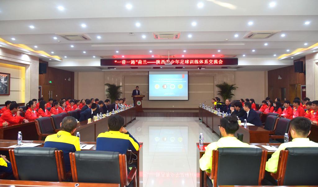 10月27日,由足球学院组织的“一带一路”荷兰—陕西青少年足球训练体系交流会暨足球专业实践活动在我院新网球馆会议室举行。万象城allwincity官网副院长文立新、足球学院朱军、陕西省足球管理中心副主任马冰泉、足球教研室主任席海龙、副主任马俊,荷兰鹿特丹费耶诺德足球俱乐部国际事务总监吉多•韦德、青训教练彼得•巴伦兹、青训教练迈克•奥比库、荷兰王国驻重庆总领事馆胡玺喆以及陕西省足球管理中心、陕西浪潮足球俱乐部相关负责人参加会议,会议由朱军主持。