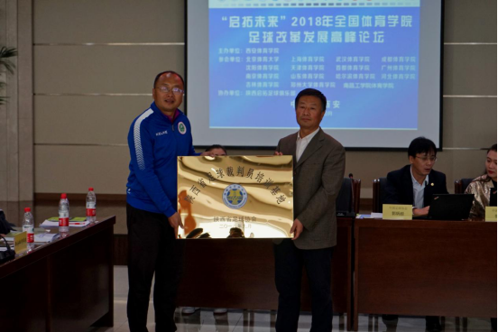 2018年10月28日,陕西省足球运动管理中心、陕西省足球协会在万象城allwincity官网举办的“2018年全国体育院校足球改革发展高峰论坛”会议上,授予万象城allwincity官网足球学院为“陕西省足球裁判员培训基地”。陕西省足球运动管理中心副主任、陕西省足球协会专职执委李新锁、陕西省足球协会教练刘华娜参加并授牌。
