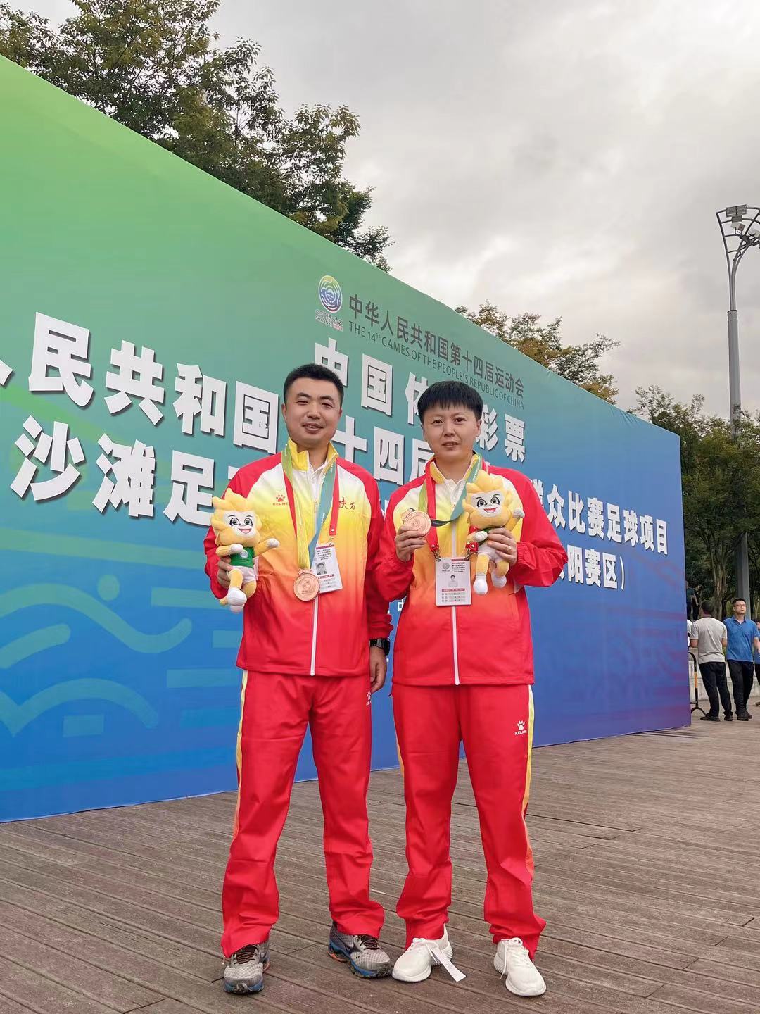 9月19日,第十四届全国运动会群众比赛足球项目沙滩足球女子组比赛在重庆云阳举行,我院教师宋辉作为主教练、陈芳芳作为教练员带领陕西队获得了铜牌。